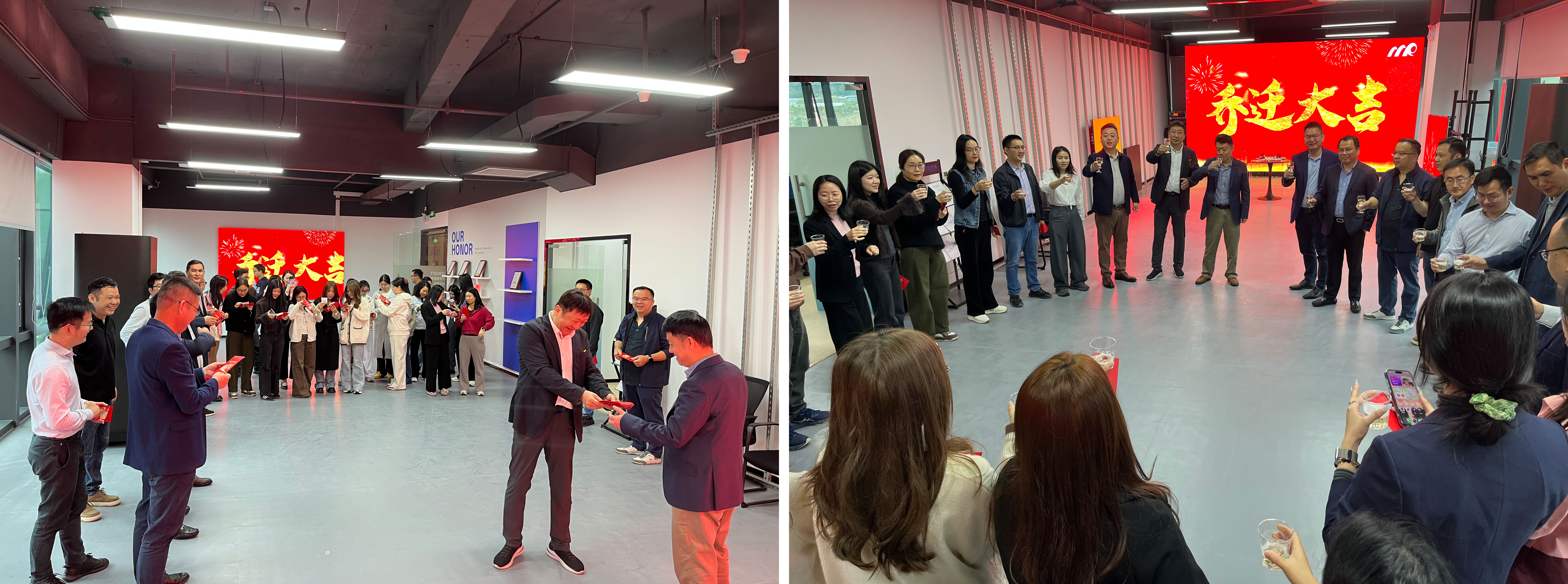 慶典最后,邁銳光電深圳公司全體員工共同舉杯,晶瑩的酒杯中盛滿了對過去的感恩、對現在的珍惜、對未來的期許;在歡快的音樂聲中,大家齊聲高呼:“祝邁銳光電喬遷大吉,宏圖大展!”這一刻,團隊的力量、坦誠的氛圍、責任的擔當,都化作杯中醇酒,融進每個人的心里。